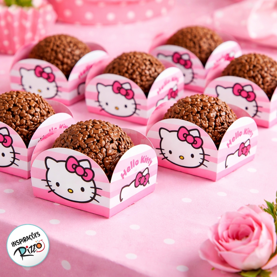 Um pacote contendo 40 unidades de porta forminha com o tema Hello Kitty