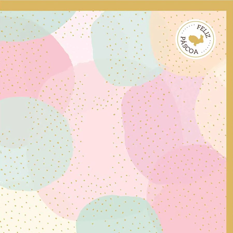 Saco para Embrulhar Ovos nas cores azul rosa e amarelo com frase "Feliz páscoa" nas medidas de 49 cm de Largura x 49 cm de Altura