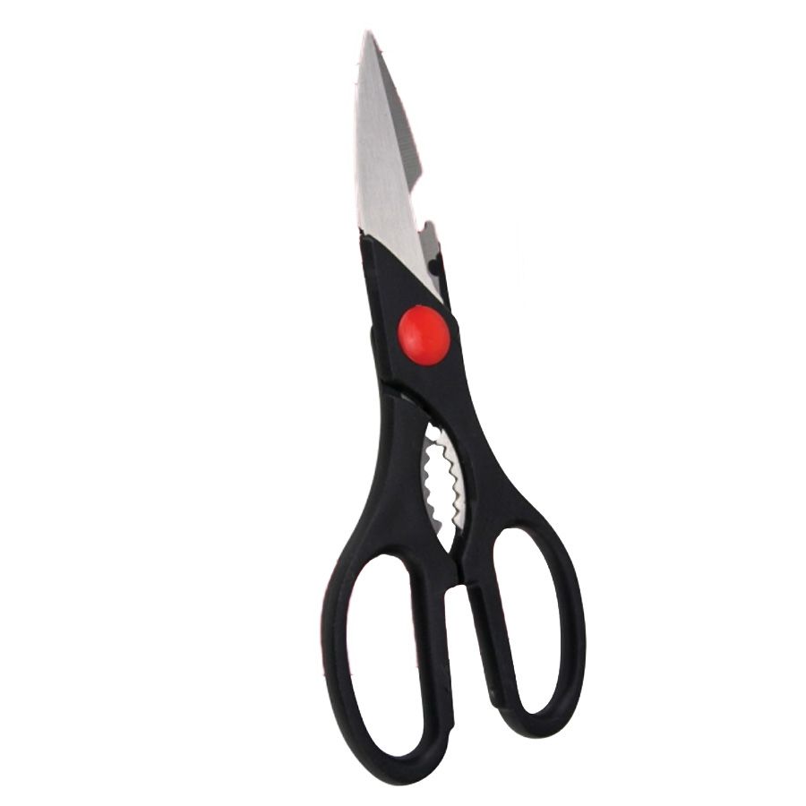 Tesoura cozinha metal plástico: Uma tesoura de cozinha em metal e plástico com as dimensões de 21,5 cm.