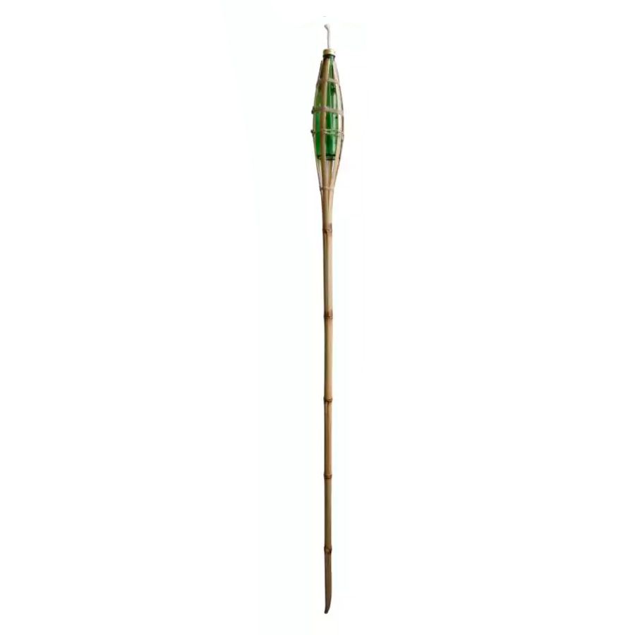 Possui 1 tocha de bambu e 1 recipiente de vidro que suporta aproximadamente 250 ml.