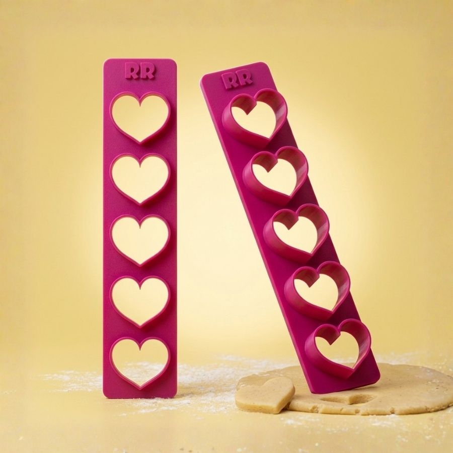 A Régua Cortador Coração - Ref.1605 é a ferramenta ideal para quem busca padronização, praticidade e delicadeza na confeitaria. Desenvolvida para cortar múltiplos corações de forma rápida e uniforme, ela é perfeita para produções como biscoitos, bolos, pães de mel e decorações com pasta americana. Seu formato facilita o trabalho e garante um acabamento profissional, sendo ideal para datas românticas, Dia dos Namorados, Dia das Mães e produções personalizadas que exigem charme e precisão.