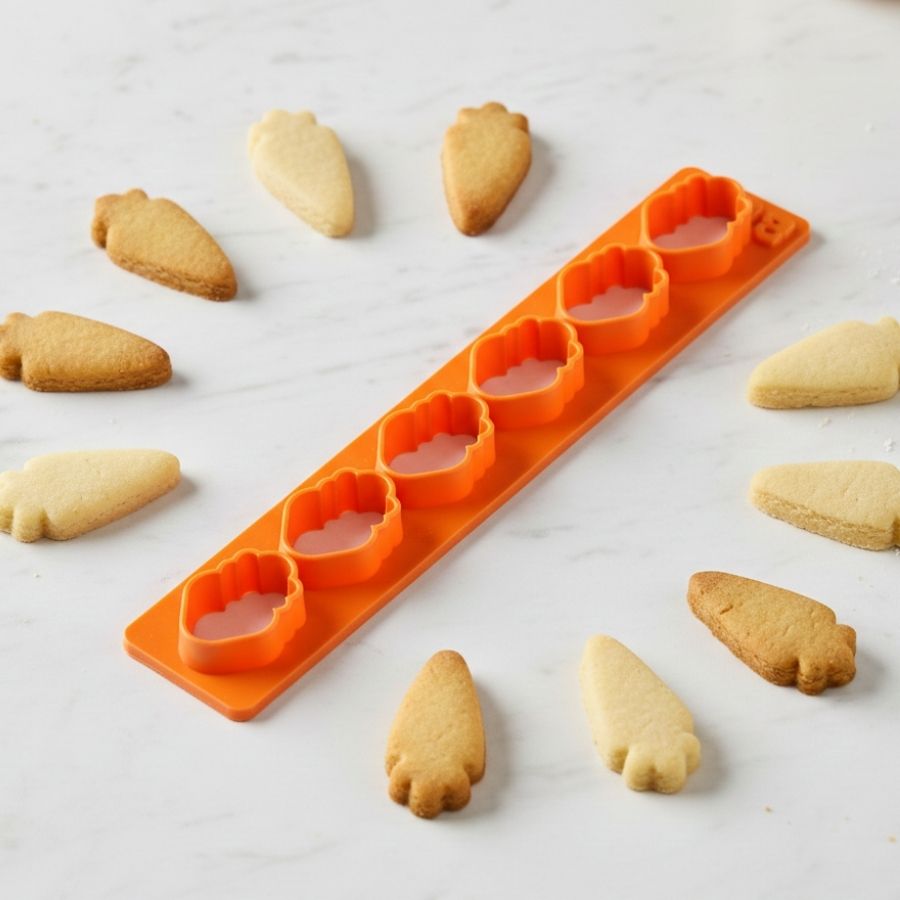 A Régua Cortador Cenoura é uma ferramenta prática e eficiente para confeitaria temática, ideal para produções de Páscoa que exigem padronização, agilidade e acabamento preciso. Seu formato em régua permite cortar várias cenouras de forma uniforme, garantindo regularidade nas peças e um visual profissional em cada criação.
