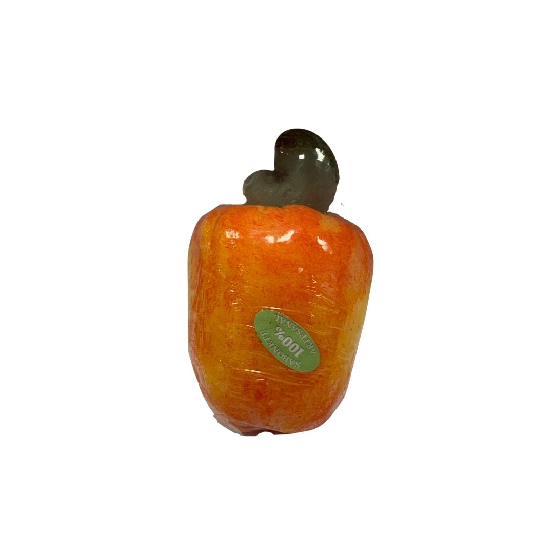 Sabonete artesanal em formato de caju, 7,5cm. Ideal para kits, lembranças e decoração com aroma suave e visual realista.