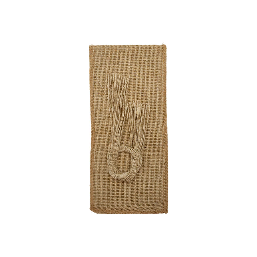Saco em juta medindo 15x33cm, acompanhado por fio em juta para o fechamento do saco
