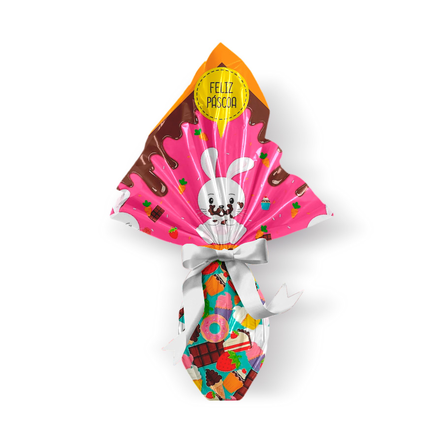 Saco Express 32x32cm para Ovos de 150g a 200g - Guloseimas Rosa - 05 unidades - Cromus Páscoa - Rizzo Embalagens