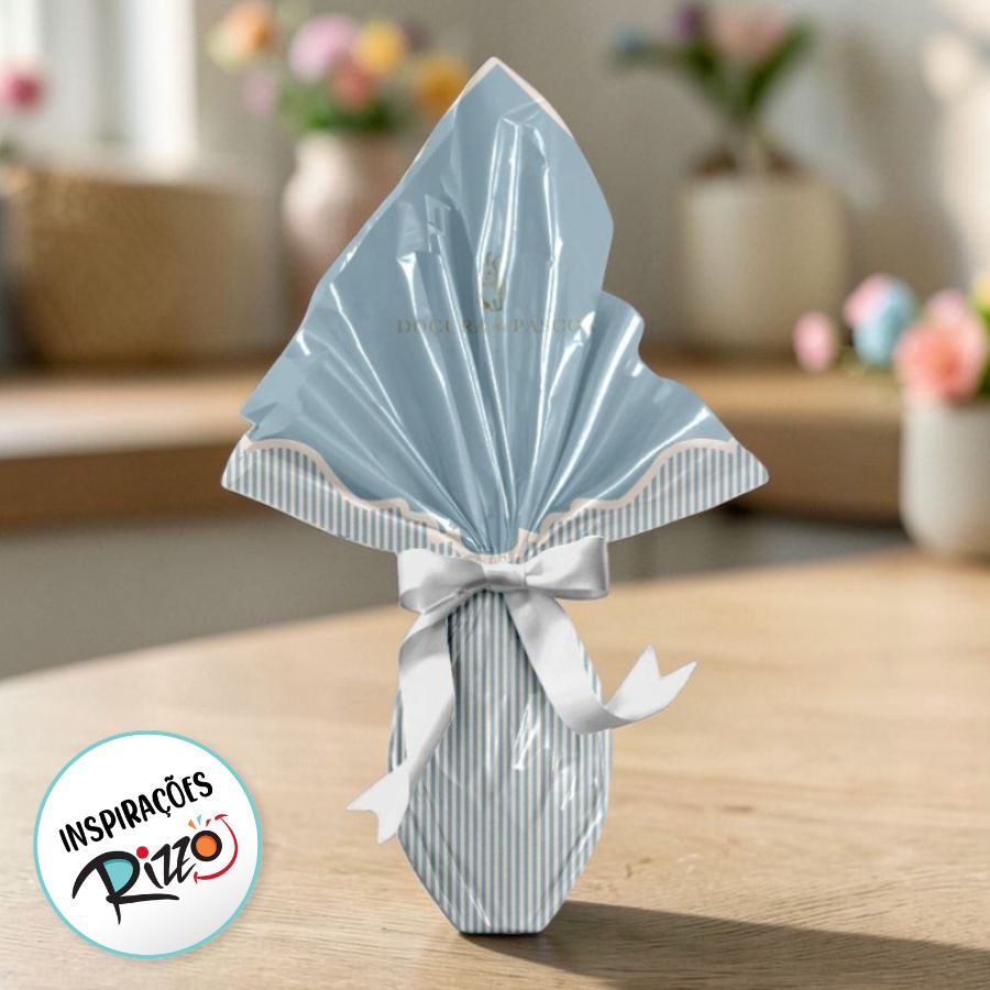 Saco express escrito doce páscoa nas cores azul/ouro