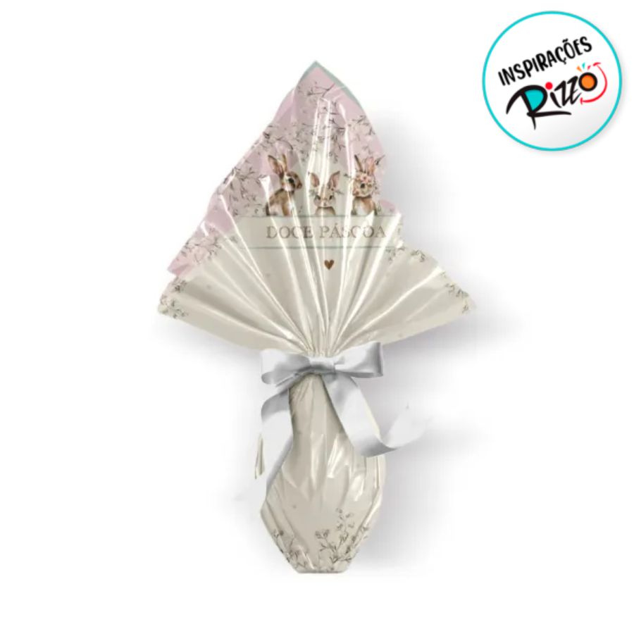 Saco Express "Doce Páscoa", tamanho 49x49 cm, ideal para embalar ovos de Páscoa de 750g a 1kg com sofisticação e praticidade.