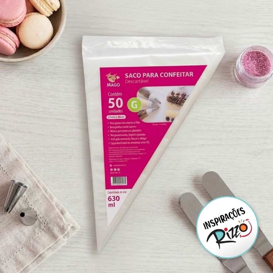 O saco de confeitar é uma ferramenta essencial para confeiteiros e amantes da confeitaria. Feito com material resistente e flexível, ele garante precisão no manuseio, facilitando a criação de detalhes delicados e designs incríveis em bolos, cupcakes e outras sobremesas. Compatível com uma ampla variedade de bicos de confeitar, esse acessório é perfeito tanto para iniciantes quanto para profissionais.