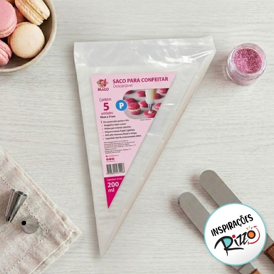 O saco de confeitar é uma ferramenta essencial para confeiteiros e amantes da confeitaria. Feito com material resistente e flexível, ele garante precisão no manuseio, facilitando a criação de detalhes delicados e designs incríveis em bolos, cupcakes e outras sobremesas. Compatível com uma ampla variedade de bicos de confeitar, esse acessório é perfeito tanto para iniciantes quanto para profissionais.