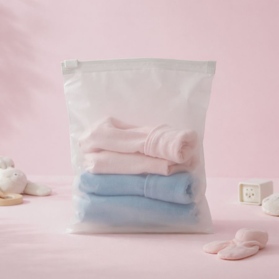 Saco transparente fosco com furo e trilho zip para organizar peças de roupas pequenas, acessórios, e para itens de higiene pessoal