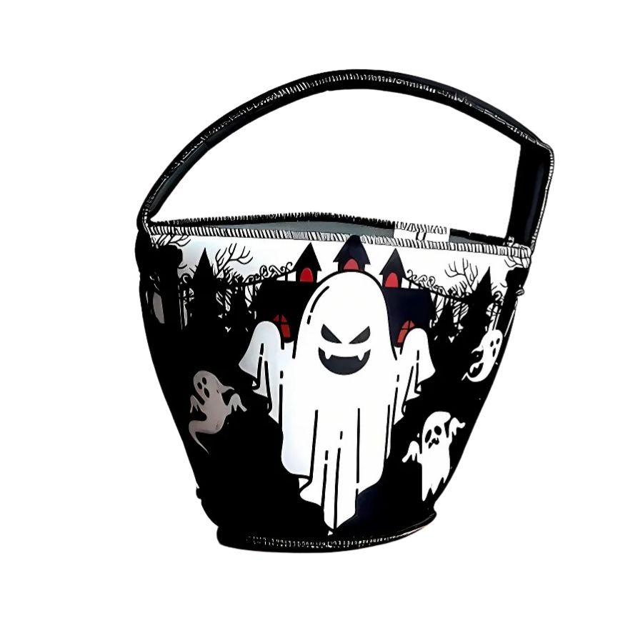 Confeccionada em 100% poliéster, a sacola é resistente, leve e fácil de limpar, garantindo durabilidade para várias ocasiões. O design divertido do fantasma adiciona um toque clássico e assustador ao acessório.