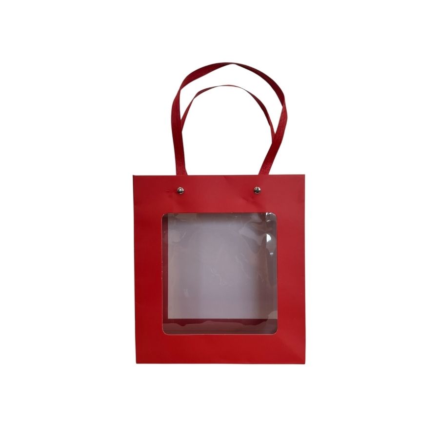 A Sacola de Papel com Gaveta e Visor de PVC 18x16,5x8,5cm Vermelha é prática, resistente e estilosa, ideal para transportar pequenos itens ou presentear com segurança.
