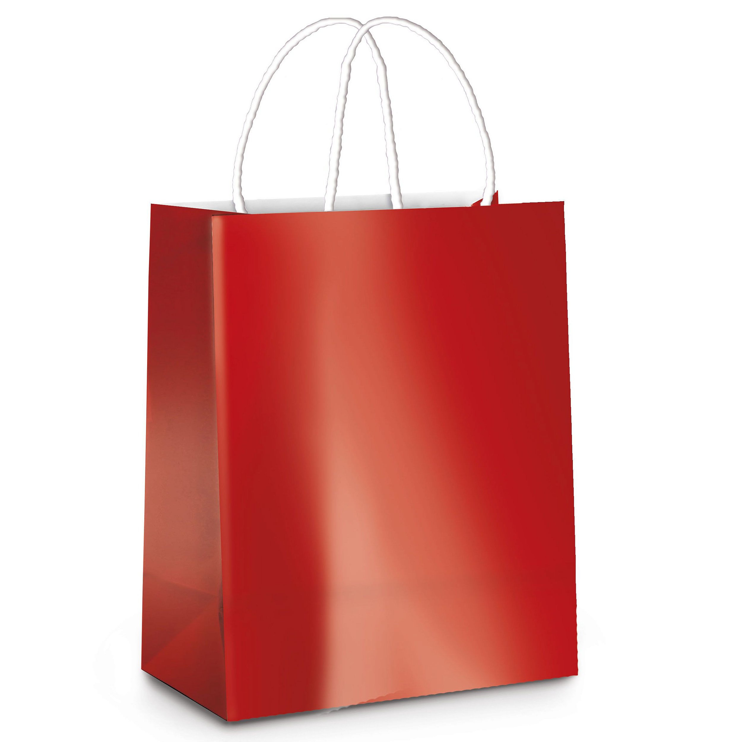 Sacola de Papel M Vermelho Metalizado - 26x19,5x9,5cm - 10 unidades - Cromus - Rizzo Embalagens