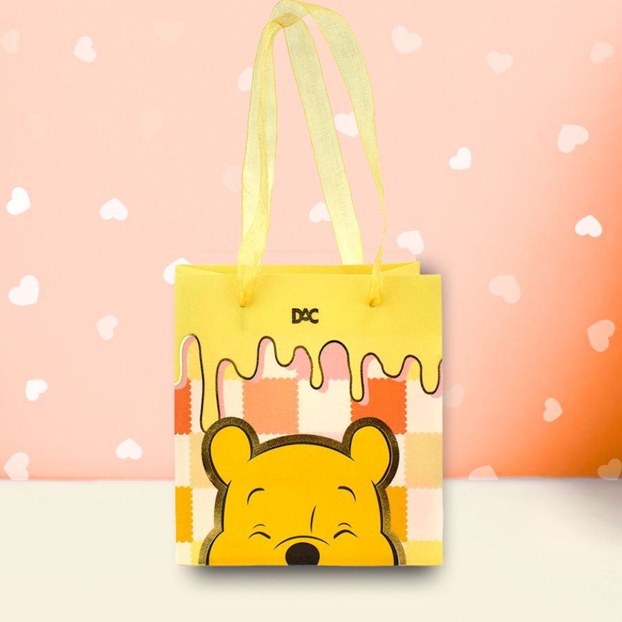 A sacola apresenta um tamanho versátil, perfeito para acomodar diversos tipos de produtos com organização e charme. O acabamento bem elaborado valoriza a composição visual, sendo uma excelente opção para quem busca elegância em embalagens criativas. Inspirado no Ursinho Pooh Disney, este item transforma a entrega de presentes em uma experiência diferenciada, reforçando o cuidado com cada detalhe. Uma escolha prática e estilosa para datas comemorativas, eventos, ações promocionais ou uso cotidiano, unindo beleza, resistência e um visual que transmite carinho e nostalgia.