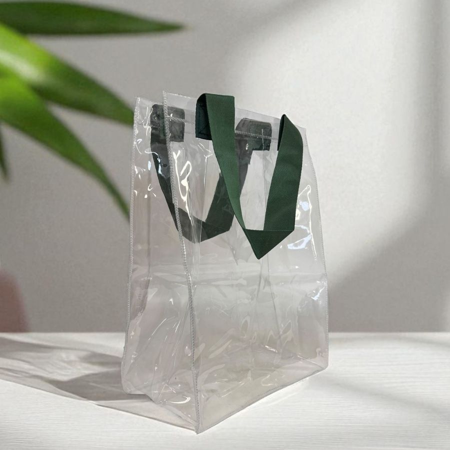 A Sacola de PVC com Alça de Nylon 35x15x25cm - Verde combina resistência e praticidade em um design moderno. Produzida em PVC durável, oferece proteção e qualidade, enquanto a cor verde traz um visual diferenciado e elegante