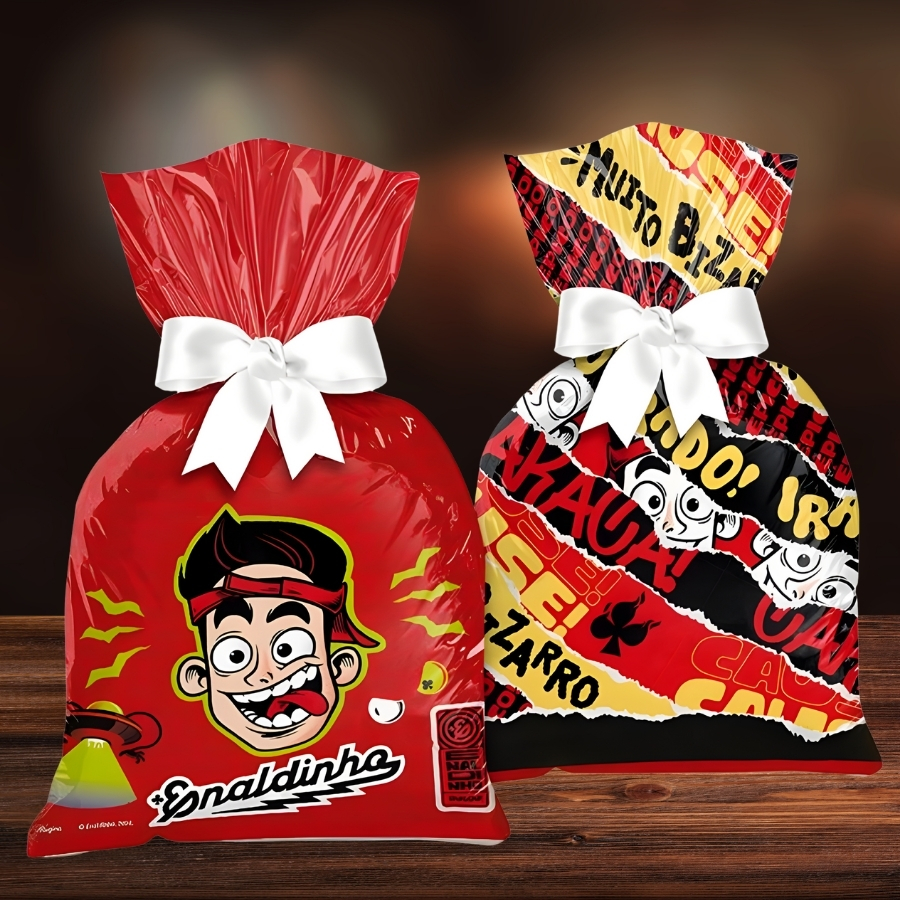 Indicada para pais, organizadores de festas, fãs do Enaldinho e lojistas, a sacola combina resistência e praticidade. Ela permite embalar lembrancinhas, brindes ou presentes com facilidade, reforçando o tema Enaldinho e garantindo que a decoração ou identidade do personagem esteja presente em cada detalhe da ocasião.