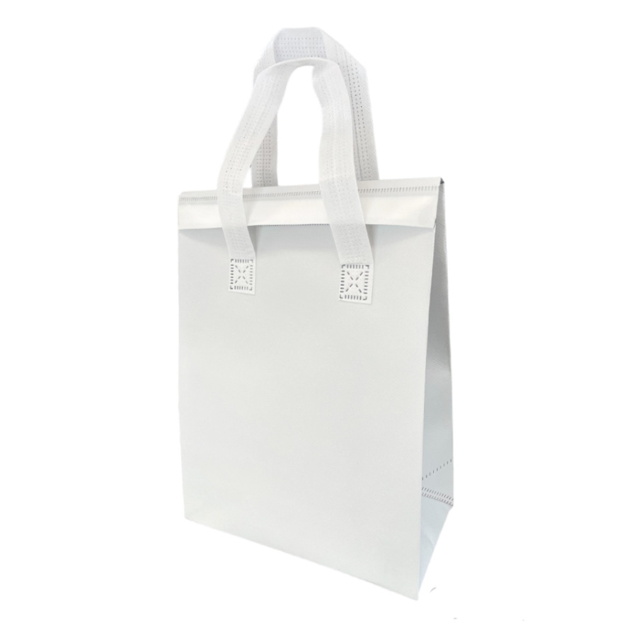 Sacola Térmica Branca, com lacre adesivo.