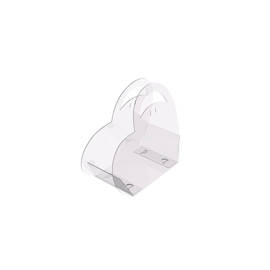 Sacola de PETG, transparente com formato de coração e as laterais abertas e alça acima da sacola