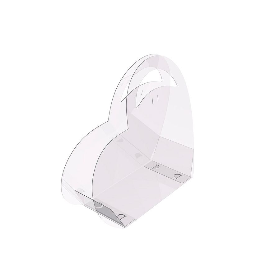Sacola de PETG, transparente com formato de coração e as laterais abertas e alça acima da sacola