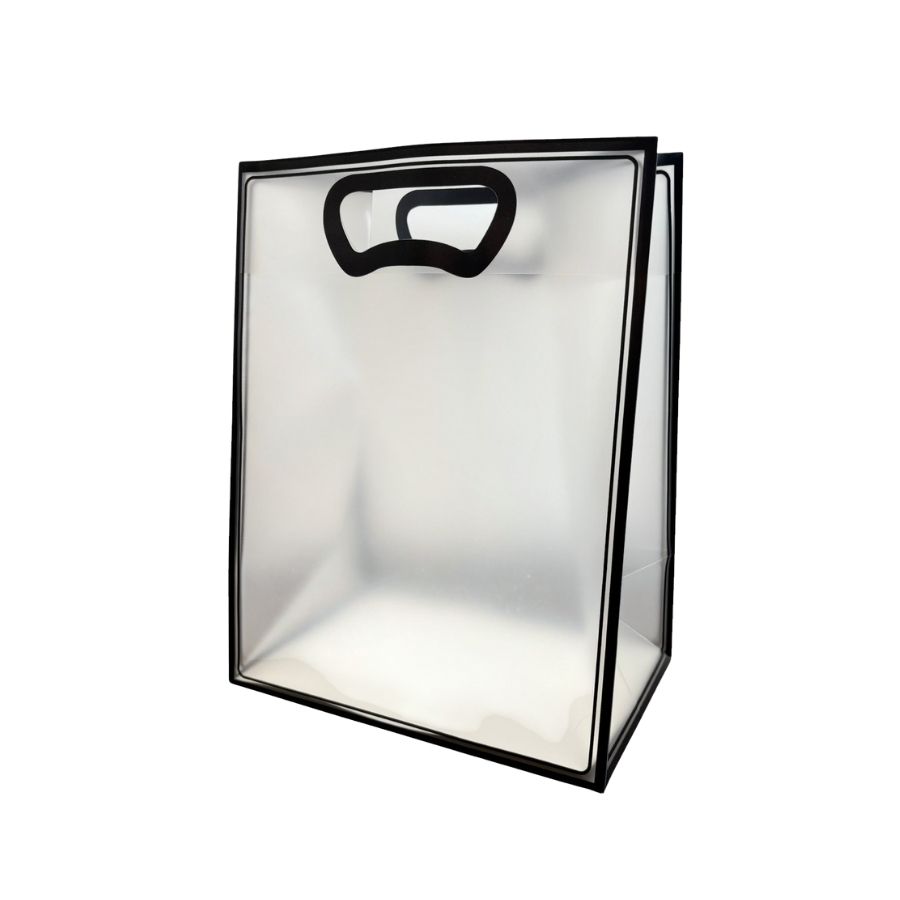 A Sacola Transparente Fosca PVC com alça preta é resistente, elegante e ideal para lembrancinhas, presentes e embalagens diferenciadas em festas e eventos.