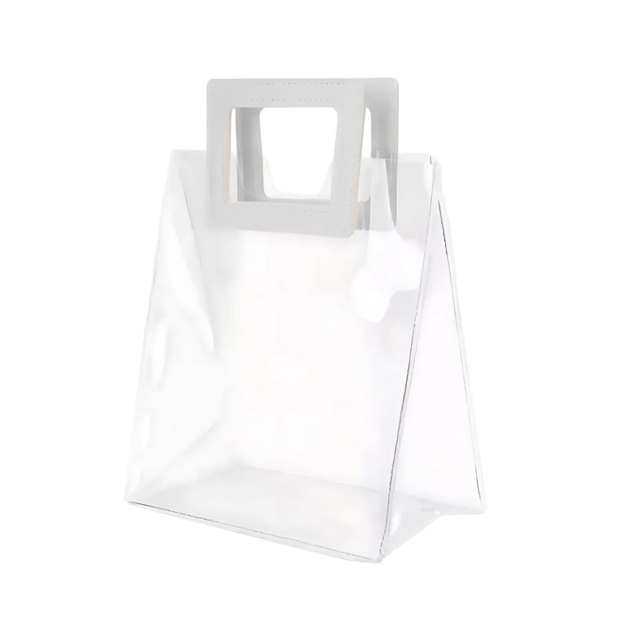 Sacola Quadrada Transparente de Plástico com alça quadrada de couro