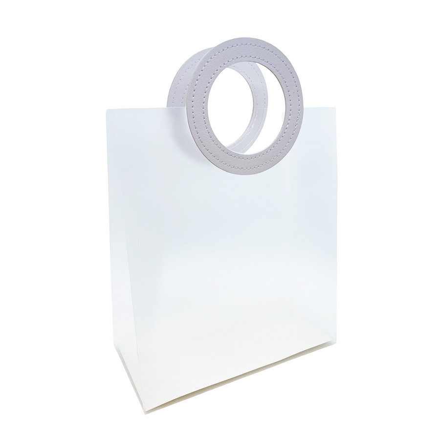 Apresentamos nossa elegante Sacola Quadrada Transparente de Plástico, adornada com uma alça redonda de couro na cor branca, perfeita para adicionar um toque de sofisticação aos seus presentes e produtos. Fabricada em plástico, sua transparência leitosa permite a visão do presente dentro, enquanto a alça de couro proporciona um toque de refinamento ao conjunto.