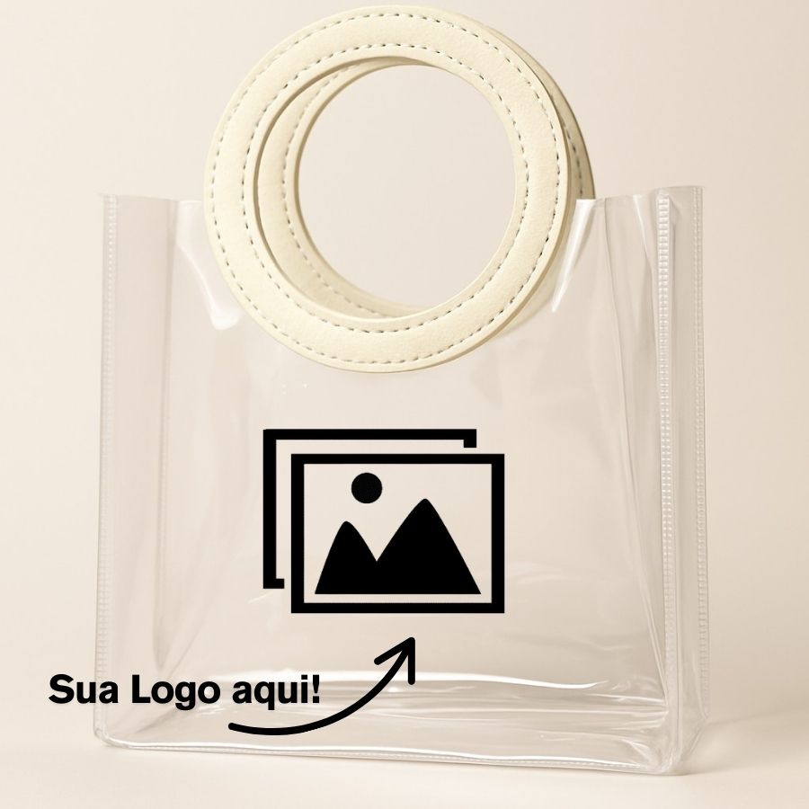 Produzida em PVC transparente e alça de couro sintético branco, a sacola valoriza o conteúdo interno e destaca a marca de forma sutil. Uma opção refinada para ações promocionais ou embalagens diferenciadas.