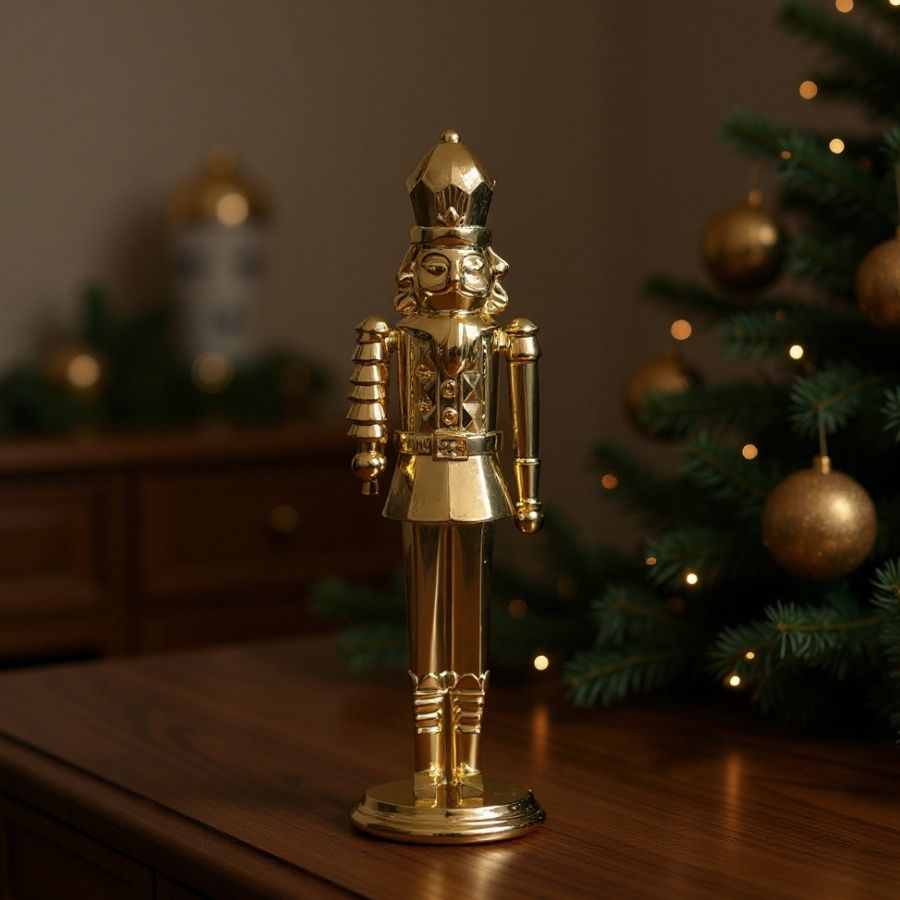 Perfeito para mesas, aparadores ou como destaque em arranjos natalinos, este soldado de chumbo adiciona um toque tradicional e luxuoso, harmonizando com outros enfeites dourados ou coloridos, criando cenários natalinos memoráveis.