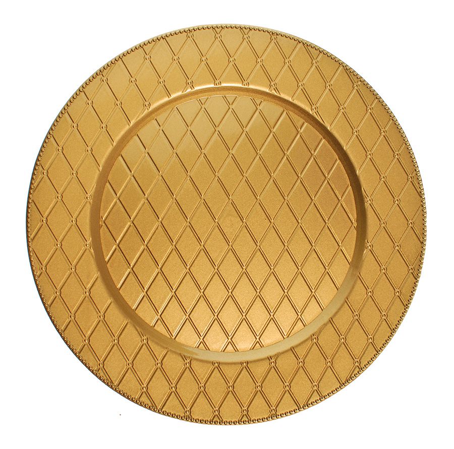 Sousplat Ouro Losangos 33cm - 01 unidade - Cromus Natal - Rizzo Embalagens