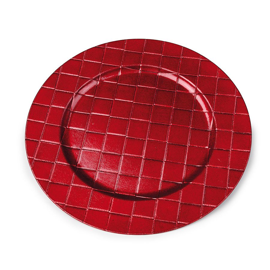 Sousplat Relevo Quadrados Vermelho 33cm - 01 unidade - Cromus Natal - Rizzo Embalagens