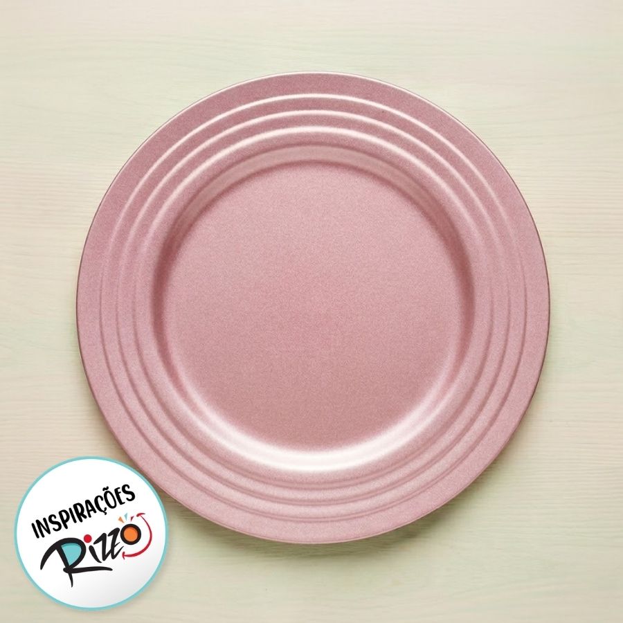 Sousplat Rosa Brilhante com Borda Listras 33cm - Cromus Páscoa - Rizzo Embalagens