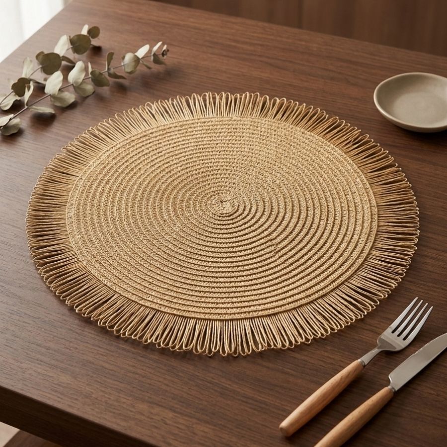 O souplast trançado com franja é a escolha perfeita para quem deseja elevar o nível da mesa posta com charme, textura e sofisticação. Produzido com acabamento detalhado e design artesanal, esse sousplat decorativo agrega elegância instantânea à composição da mesa. Seu trançado valoriza a estética natural e contemporânea, enquanto a franja delicada adiciona movimento e um toque acolhedor. Além de embelezar, protege a toalha ou a mesa contra respingos e calor dos pratos, unindo funcionalidade e decoração em uma única peça.
