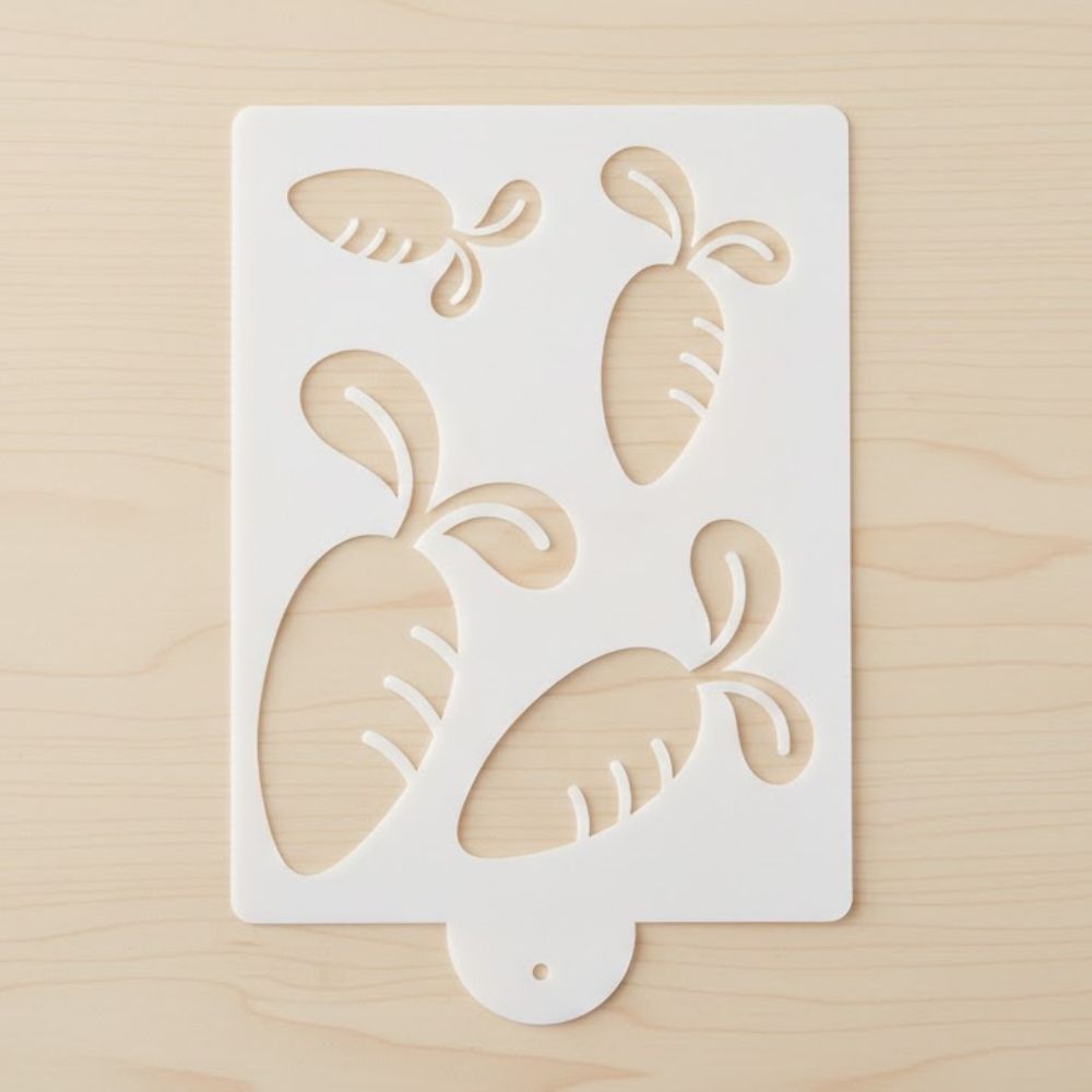 O stencil de Páscoa com estampa de cenouras apresenta um design delicado e divertido, perfeito para composições temáticas que remetem ao universo da Páscoa e do coelhinho. Com ilustrações de cenouras em diferentes posições, ele cria um efeito visual encantador e harmonioso. Com medidas aproximadas de 15x20cm, é ideal para personalizar doces, chocolates e embalagens de forma criativa e profissional.