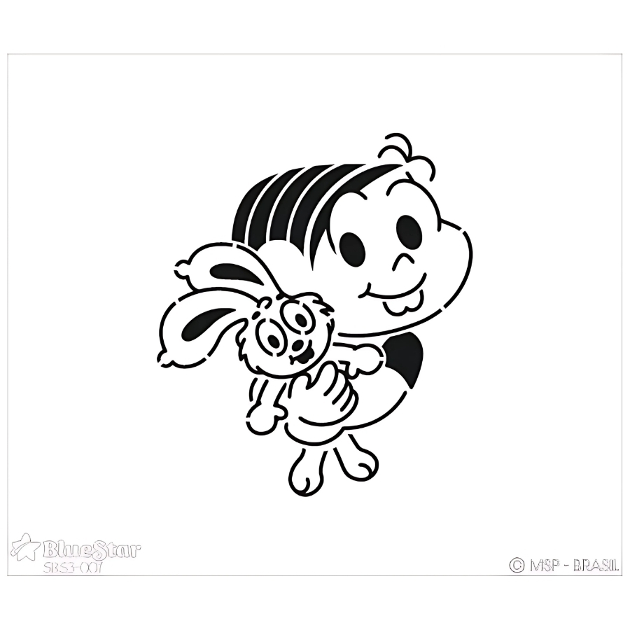 Stencil oficial da Mônica, tamanho 17x20cm. Ideal para confeitaria e artesanato. Resistente, lavável e reutilizável. Pode ser usado com glacê, açúcar, corantes e tintas.