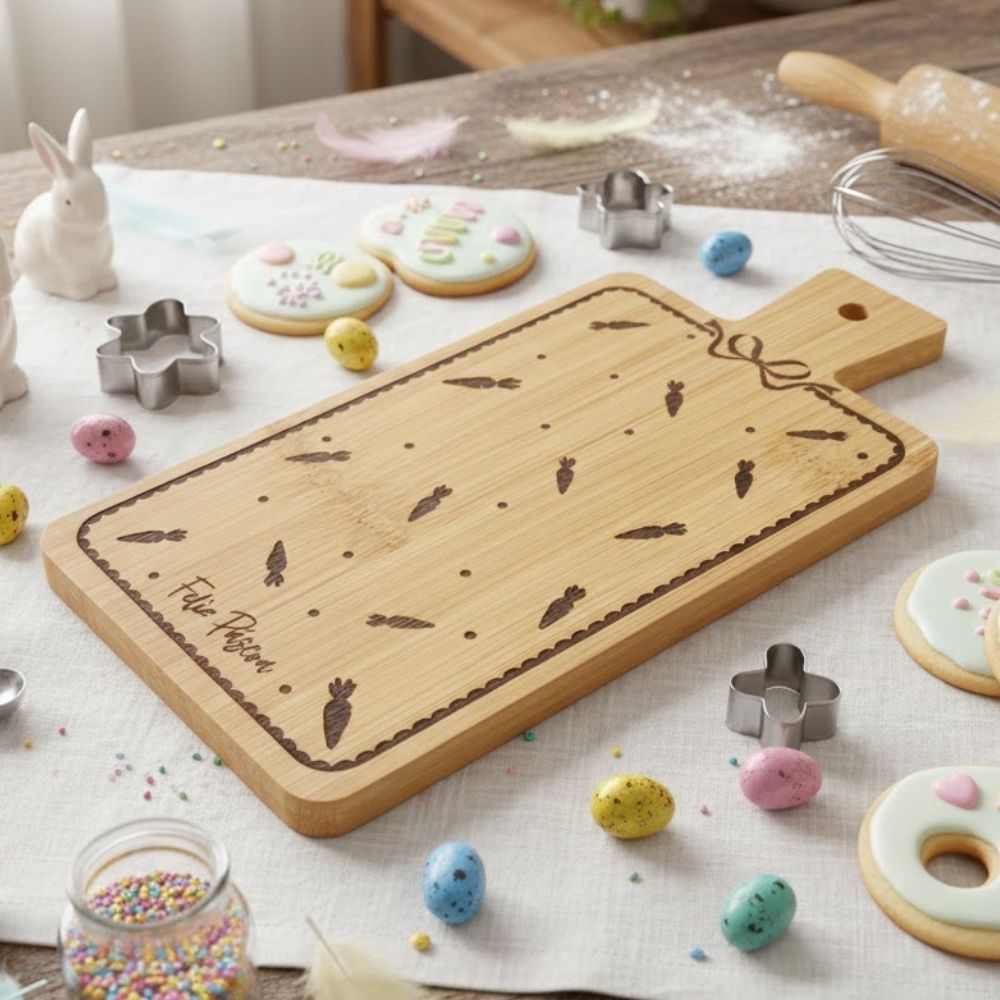 A tábua de bambu Páscoa Cenourinhas é um item delicado e versátil para compor a decoração e apresentação na Páscoa. Em tamanho compacto, com dimensões de 21x10,5cm, possui acabamento em bambu natural e decoração com cenourinhas e detalhes temáticos, criando um visual charmoso e acolhedor. A tonalidade marrom reforça o estilo rústico e combina perfeitamente com propostas artesanais e afetivas.
