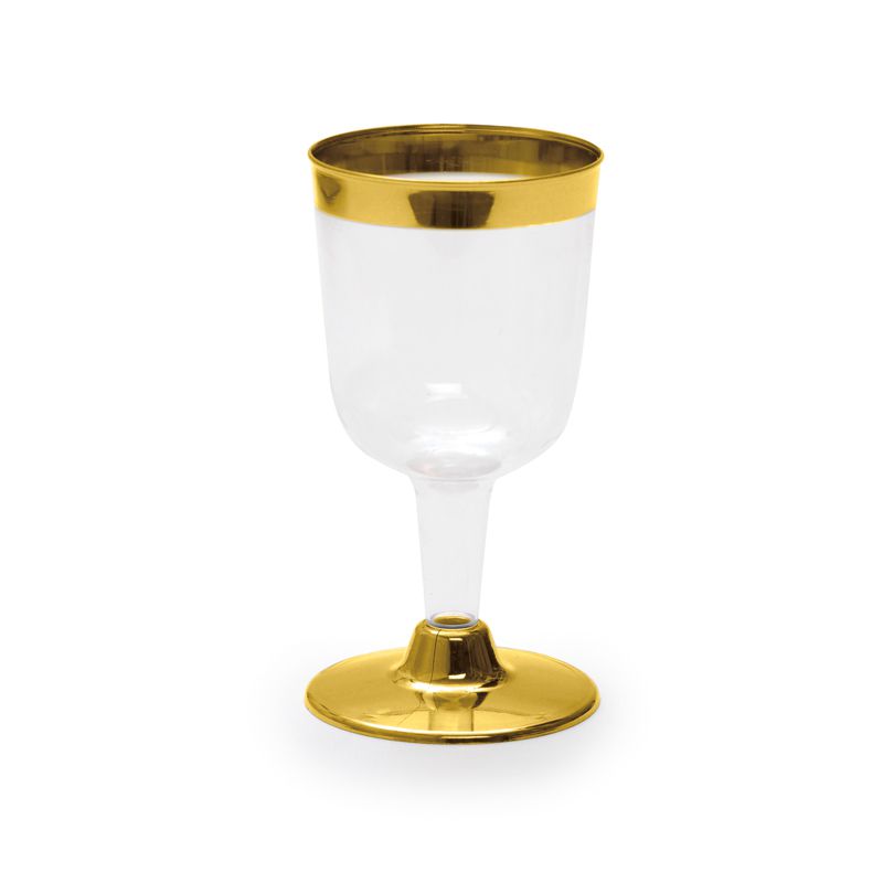 Taça de Vinho com Borda Ouro 170ml - 06 unidades - Descartáveis de Luxo - Cromus - Rizzo Festas