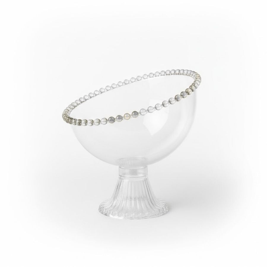 Taça inclinada em acrílico transparente com formato esfera, ideal para servir doces, lembrancinhas e prendas em festas juninas, aniversários e eventos. Mede aproximadamente 18x16x17cm e valoriza a decoração.