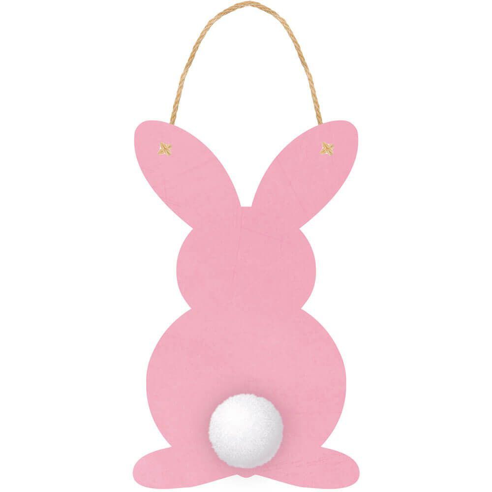 Tag de Páscoa Madeira Coelho Rosa com Pompom - LitoArte - Rizzo Embalagens