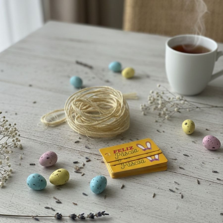 As tags temáticas de Feliz Páscoa são ideais para dar um toque especial em embalagens de chocolate, ovos de páscoa, caixas de doces e lembrancinhas personalizadas. Com designs encantadores inspirados na páscoa, coelhinhos, chocolates e mensagens comemorativas, essas tags decorativas com sisal valorizam a apresentação dos produtos e tornam o momento ainda mais especial.