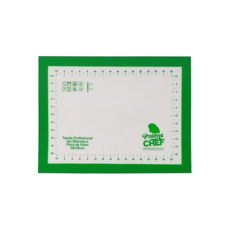 Esse maravilhoso Tapete de Fibra de Vidro com Silicone da Prime Chef traz em sua superfície marcações em centímetros para auxilar na confecção dos produtos.