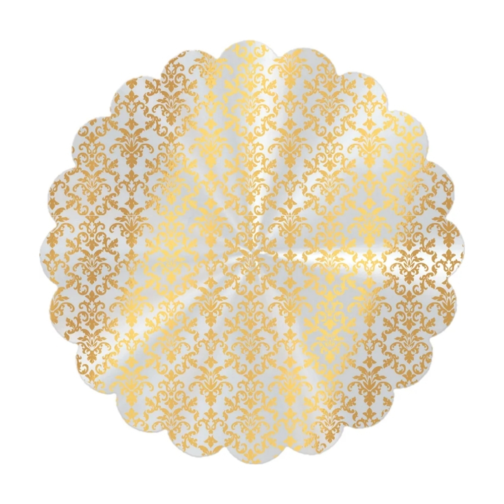 Elegante e sofisticado, o tapetinho para doces Arabesque Ouro é ideal para valorizar a apresentação de doces finos e composições especiais. Com delicado recorte em arabesco e acabamento na cor ouro, o tapetinho traz um visual clássico e refinado, perfeito para destacar cada doce com charme e cuidado. O tamanho de 7cm é ideal para bases individuais, mantendo a apresentação limpa e harmoniosa.