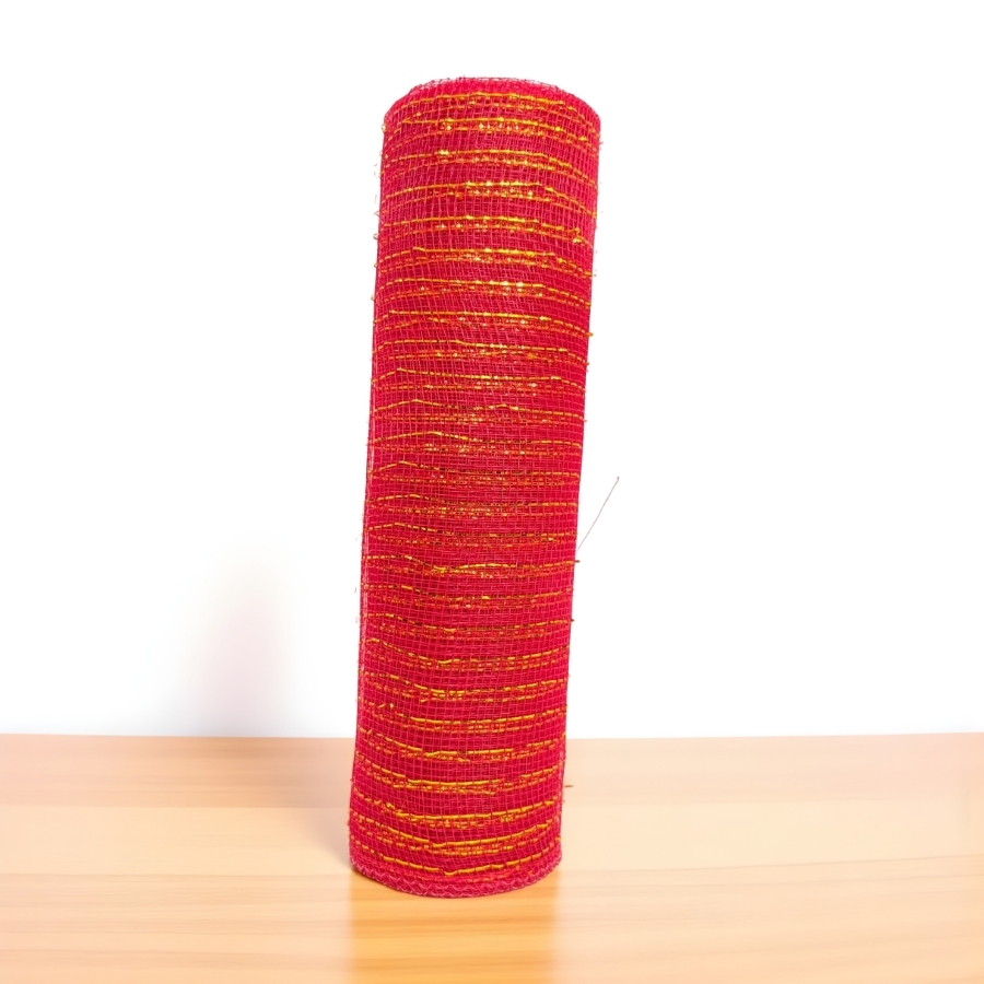 Com textura vazada e flexível, essa tela é perfeita para envolver presentes, montar arranjos, laços ou decorar guirlandas e centros de mesa. O contraste entre o vermelho e o dourado cria um efeito elegante e encantador, tornando-se um item indispensável para quem busca um toque refinado no Natal.