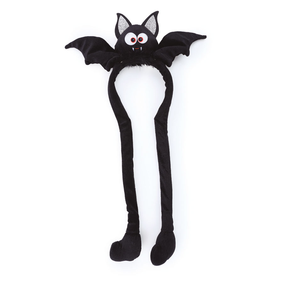 Tiara de pelúcia em formato de morcego, movimento manual das asas.