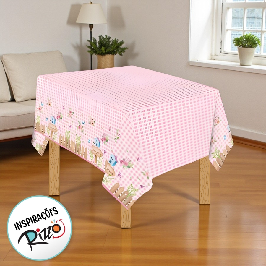 A Toalha de Mesa de Papel Meu Jardim possui 220x120cm, sendo adequada para mesas retangulares. Produzida em papel decorativo de alta qualidade, é descartável, prática e perfeita para festas infantis e eventos temáticos.