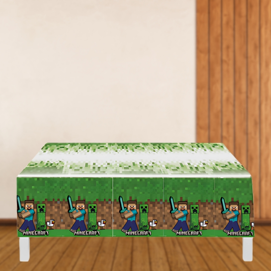 Toalha Plástica Minecraft com 1,20m x 1,80m é uma escolha ideal para decorar mesas em festas infantis e eventos temáticos. Seu tamanho amplo cobre perfeitamente a superfície, proporcionando uma decoração alegre e vibrante, perfeita para festas de aniversário e outros eventos festivos.