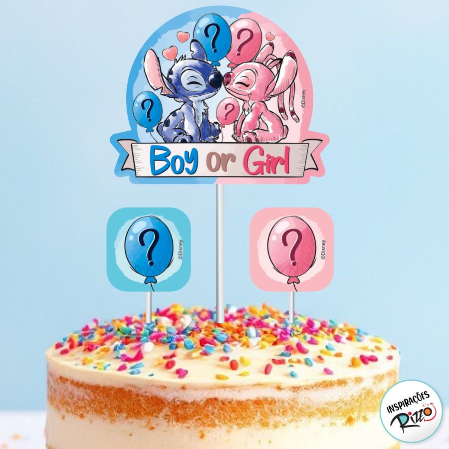Nosso topo de bolo é extremamente versátil e pode ser utilizado em diversas partes da decoração chá revelação, especialmente no bolo, dando um toque especial a cada detalhe da sua festa de revelação. Não perca a oportunidade de tornar a sua chá revelação Stitch e Angel um verdadeiro sucesso!