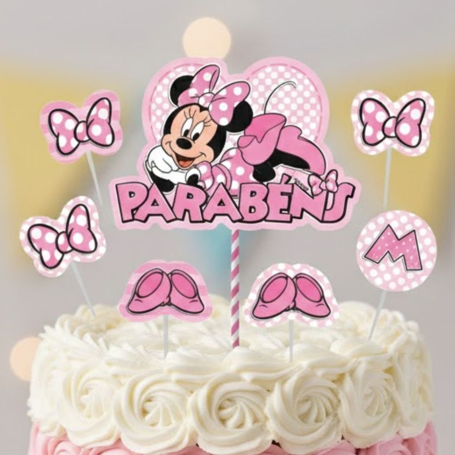 Kit com 7 peças para topo de bolo inspirado em Minnie Mouse Disney