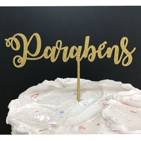 Topo de Bolo Parabéns Glitter Dourado Sonho Fino Rizzo Confeitaria