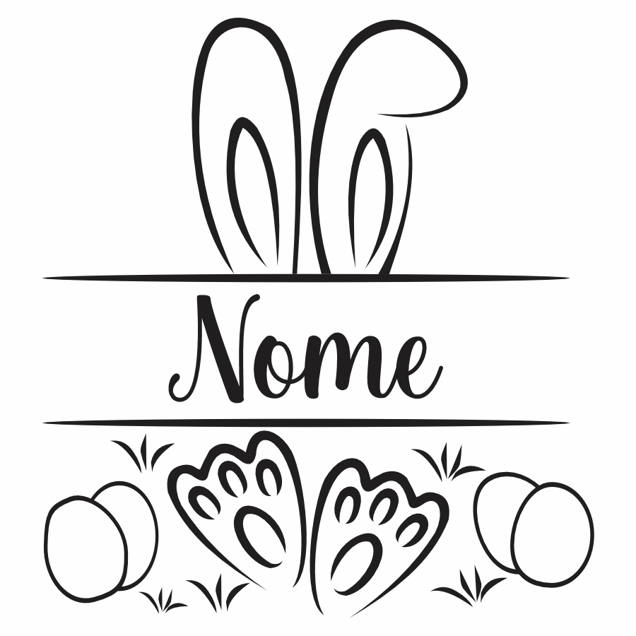 Transfer personalizado com nome e estampa de coelho para Páscoa, ideal para criar peças exclusivas e temáticas.