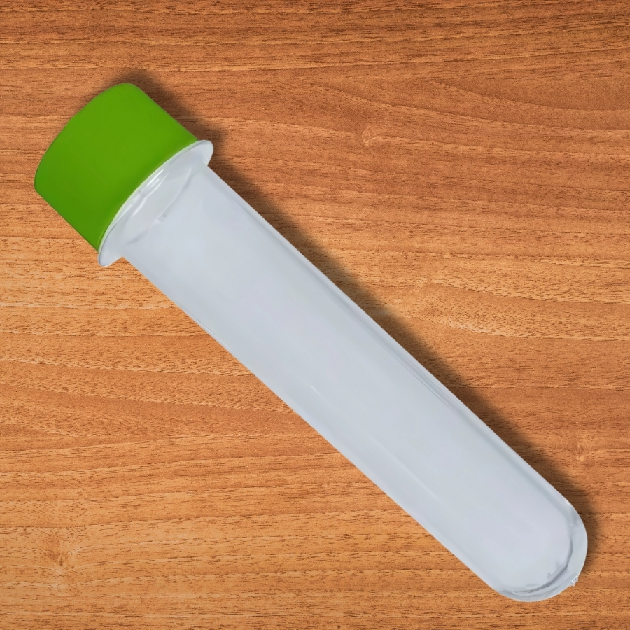 Tubete Cristal 13cm com Tampa Verde Claro. Leveza e transparência para lembrancinhas delicadas e criativas.